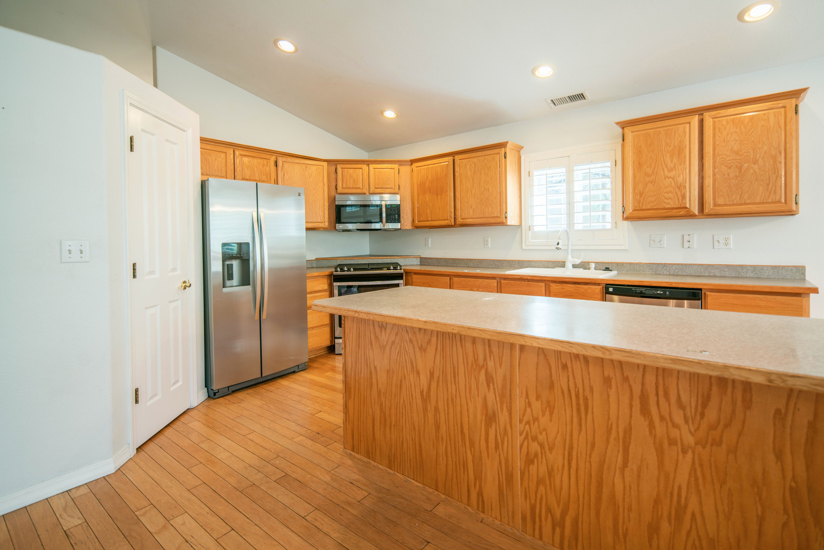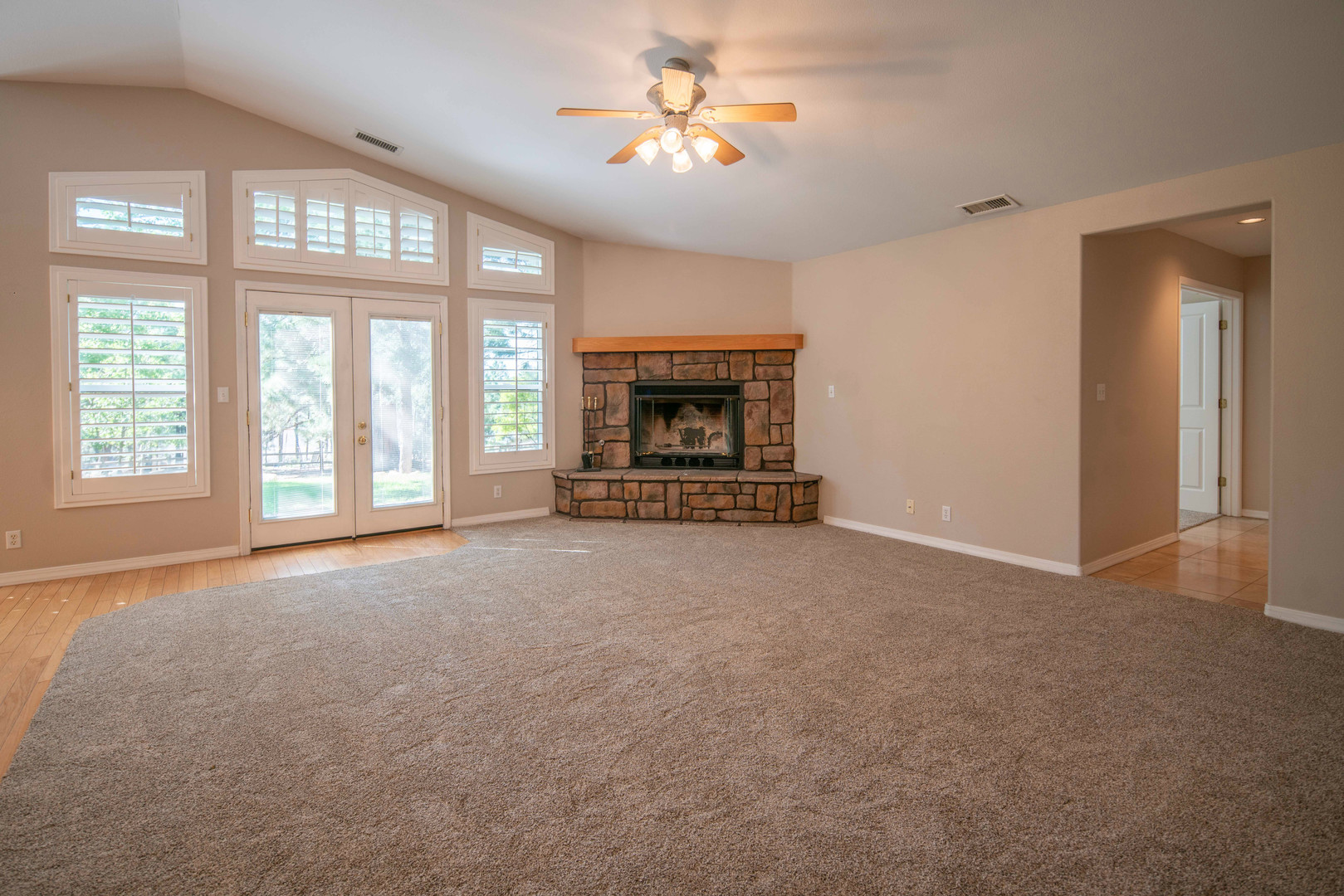 Gorgeous, single story, 4 bedroom 2 bath home! This home features central air, vaulted ceilings, fireplace and wood shutters throughout that provide tons of natural light! The master suite has a jetted tub and walk in closet. Washer & dryer are also included! The beautiful park like backyard will be great for entertaining! The 3 car garage boasts tons of storage to hold all of your vehicles and toys!