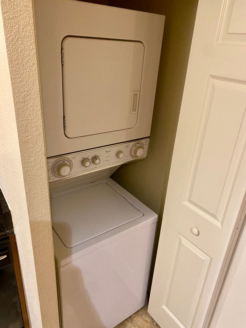 Upgraded one bedroom, one bathroom unit with granite in kitchens and bathrooms for the counters, ceiling fan with tile and new carpet flooring. Stack washer/dryer, dishwasher, stove and refrigerator all inside the unit. Community amenities include a heated pool, hot tub and fitness room. Reserved covered parking spot comes with the unit as well.
