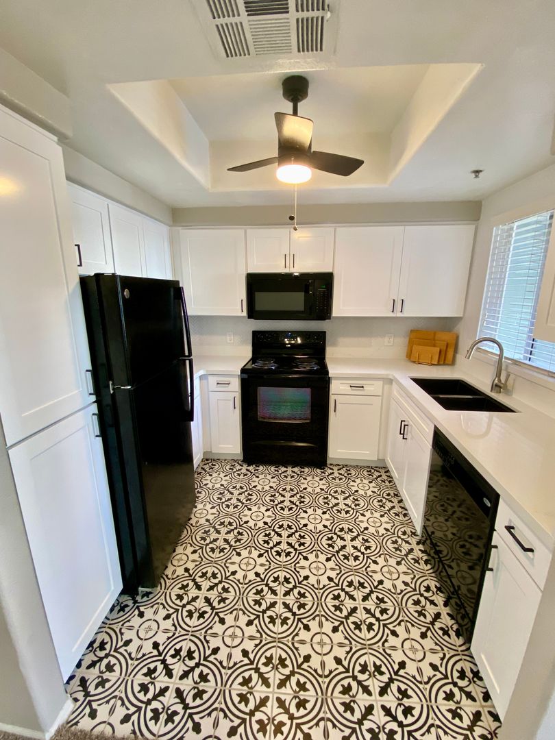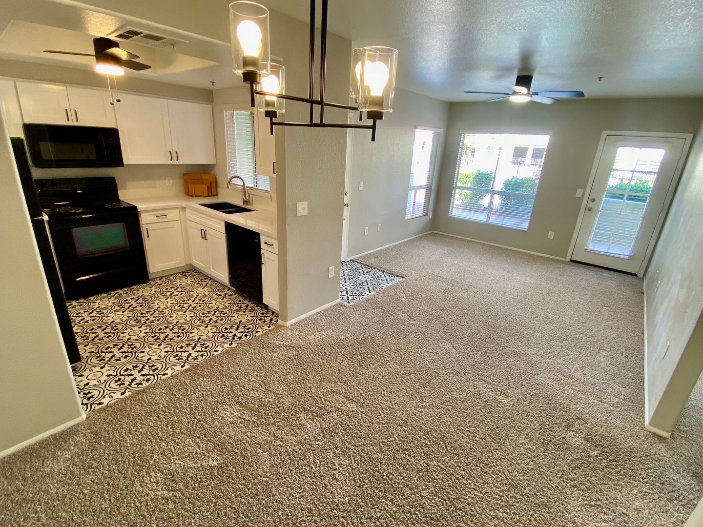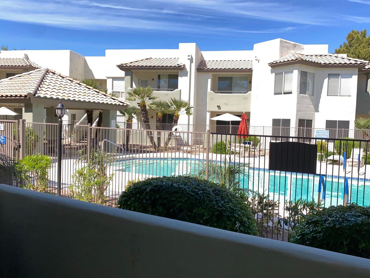 Ground floor unit with community pool just outside your door.  This one bedroom, one bathroom unit has fresh paint and flooring throughout. It has a large patio and comes with ceiling fans throughout, refrigerator, range, dishwasher, microwave, full sized washer and dryer and a very large bathroom with a linen closet.  Water, sewer, trash and HOA are included in your monthly rent.  Unit also comes with a storage closet on the patio. No pets.