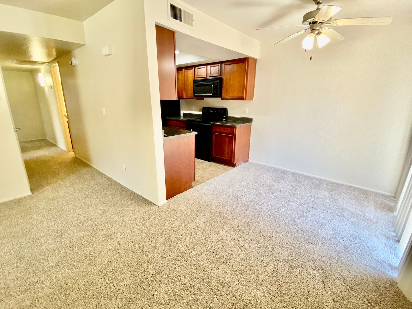 This 3 bedroom 2 bathroom has newer carpet and paint throughout. Upgraded kitchen, large bedrooms and lots of natural lighting throughout. Ceiling fans in every room, all appliances included. You also get a 1 car garage.